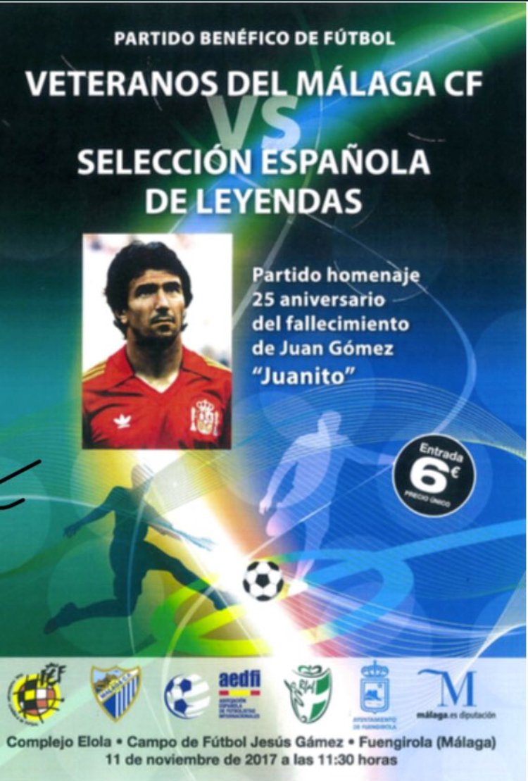La Selección Española de Leyendas de la Asociación Española de Futbolistas Internacionales y las Leyendas del Málaga CF han jugado un encuentro en homenaje a Juan Gómez «Juanito» en Fuengirola este sábado 11 de noviembre.